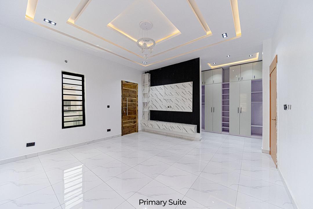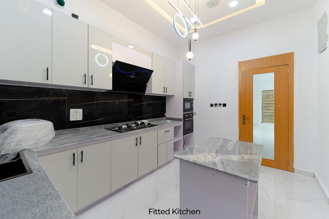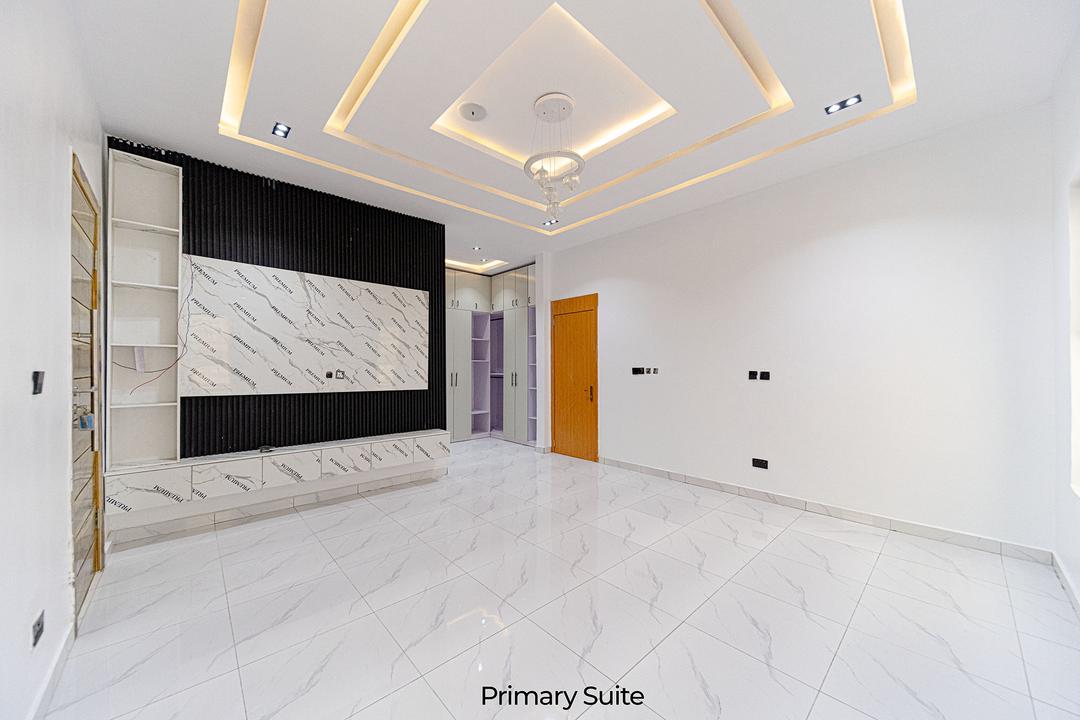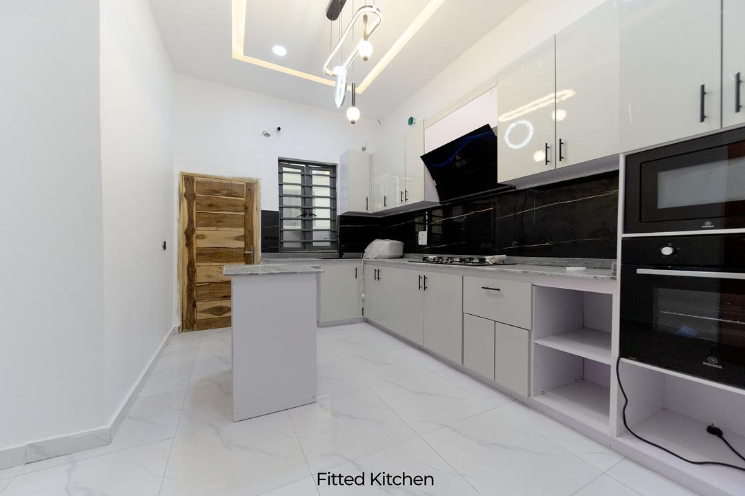 This elegant 4-bedroom detached house offers modern luxury with spacious interiors and high-end finishes. All rooms are en-suite, featuring stylish POP ceilings, recessed LED lighting, and a family lounge. The fully fitted kitchen includes premium appliances, sleek cabinetry, and a dining area designed for comfort.