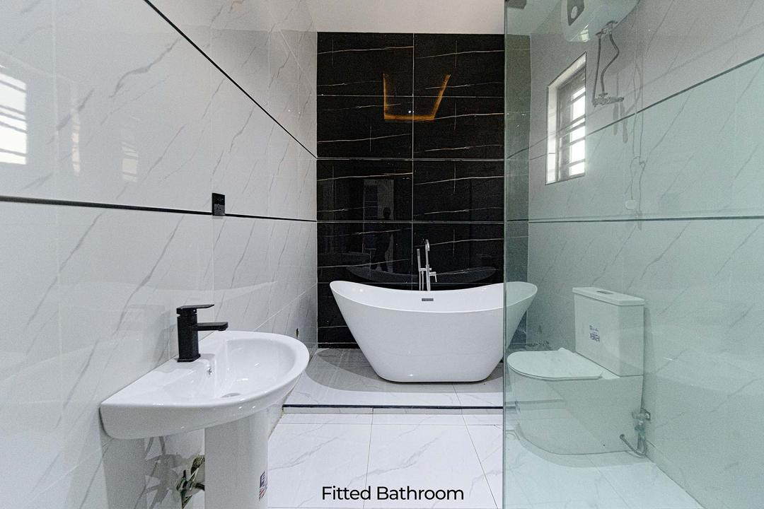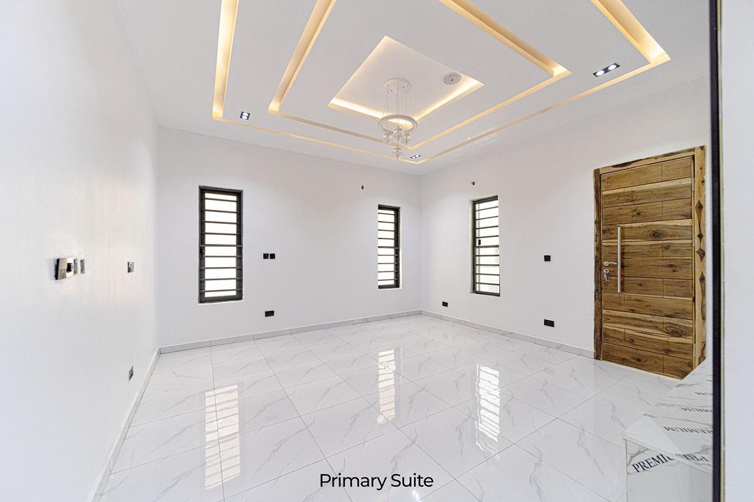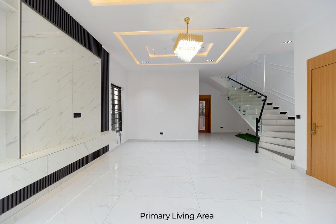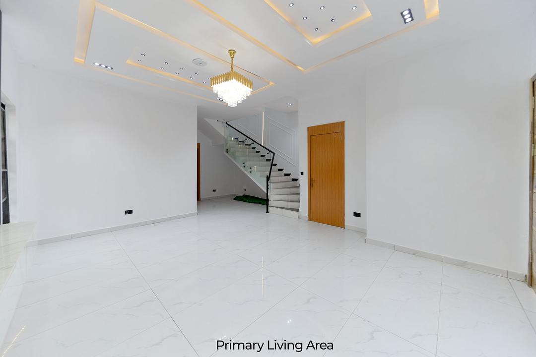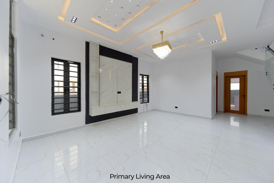 This elegant 4-bedroom detached house offers modern luxury with spacious interiors and high-end finishes. All rooms are en-suite, featuring stylish POP ceilings, recessed LED lighting, and a family lounge. The fully fitted kitchen includes premium appliances, sleek cabinetry, and a dining area designed for comfort.