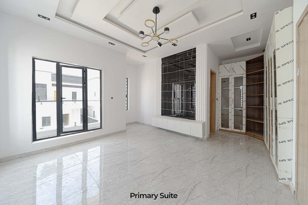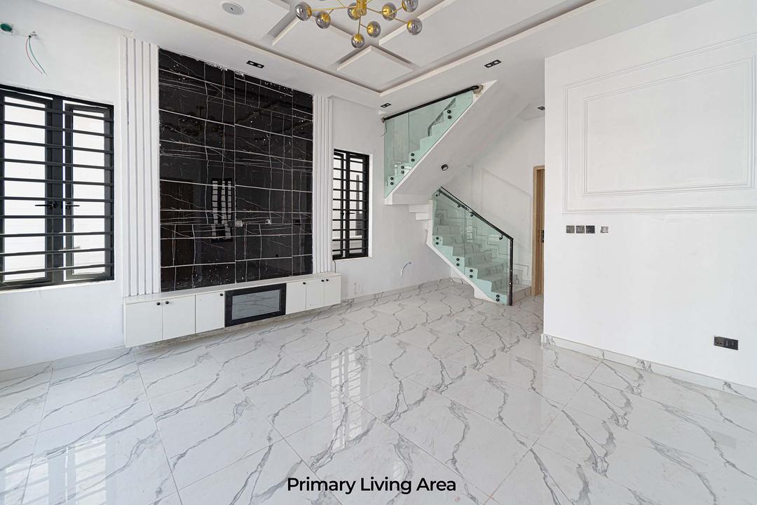 This newly built 4-bedroom, 4.5-bathroom detached home blends modern design with luxury. All rooms are en-suite, featuring sleek POP ceilings and recessed LED lighting. The fully fitted kitchen boasts top-quality appliances, complemented by a dining area with elegant chandeliers. Additional amenities include a family lounge, balconies, and inbuilt Bluetooth speakers.